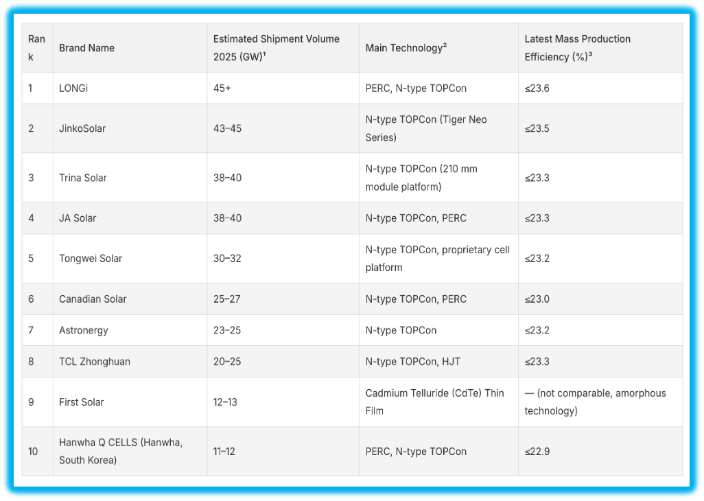 شرکت ترینا سولار در اخرین رتبه بندی 10 تولیدکننده برتر ماژول فتوولتائیک جهان در رتبه ۳ سال 2025 قرار دارد.